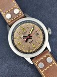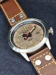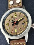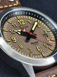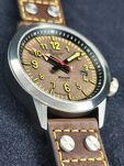 indeksy godzinowe (cyfry) i pięciominutowe nakładane wypełnione beżową masą świecącą (old radium, jasnozielona w nocy) indeksy minutowe z masy świecącej (old radium, jasnozielona w nocy)